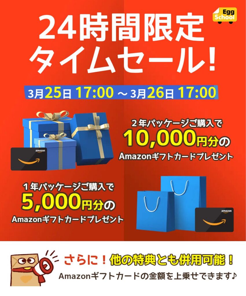 エッグスクールでは、3/25(水)17時~3/26(木)17時の24時間限定タイムセールが開催されます!