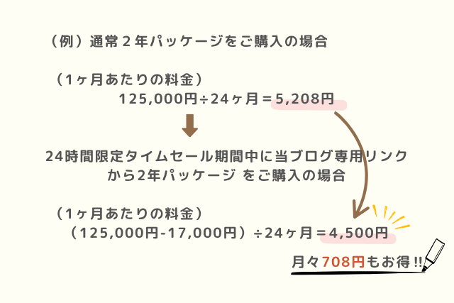 タイムセール期間中にエッグスクールのパッケージ商品を購入すると、