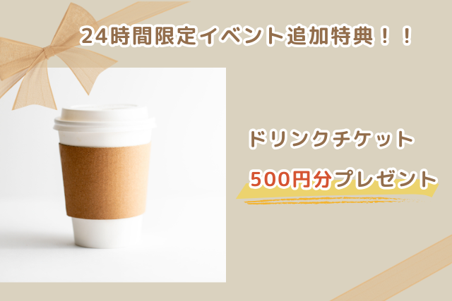 また、今回は追加特典として、ドリンクチケット500円分のプレゼントもあります!