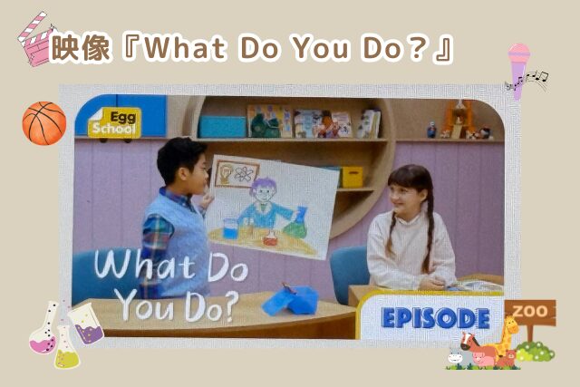 映像のエピソードは、絵本「What Do You Do?(どんなお仕事?)」とつながる内容で、子ども達が「大きくなったら何になりたい?」というテーマで英語を楽しく学べる内容です。