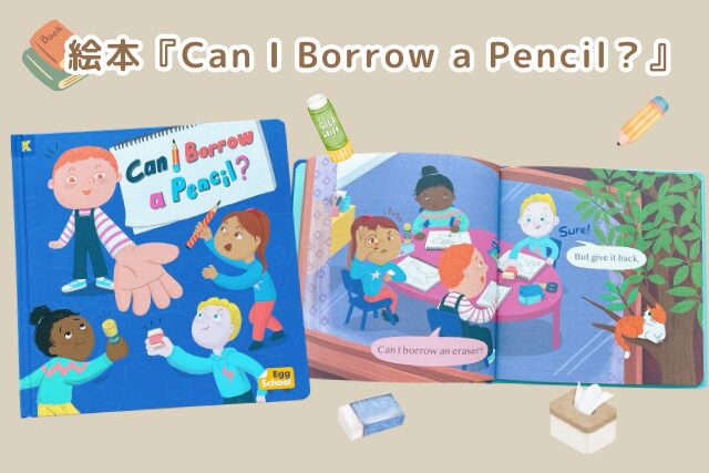 11月のエッグスクールKの教材の2冊目は、『Can I Borrow a Pencil?』(えんぴつを貸してくれる?)」です。