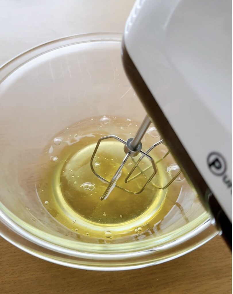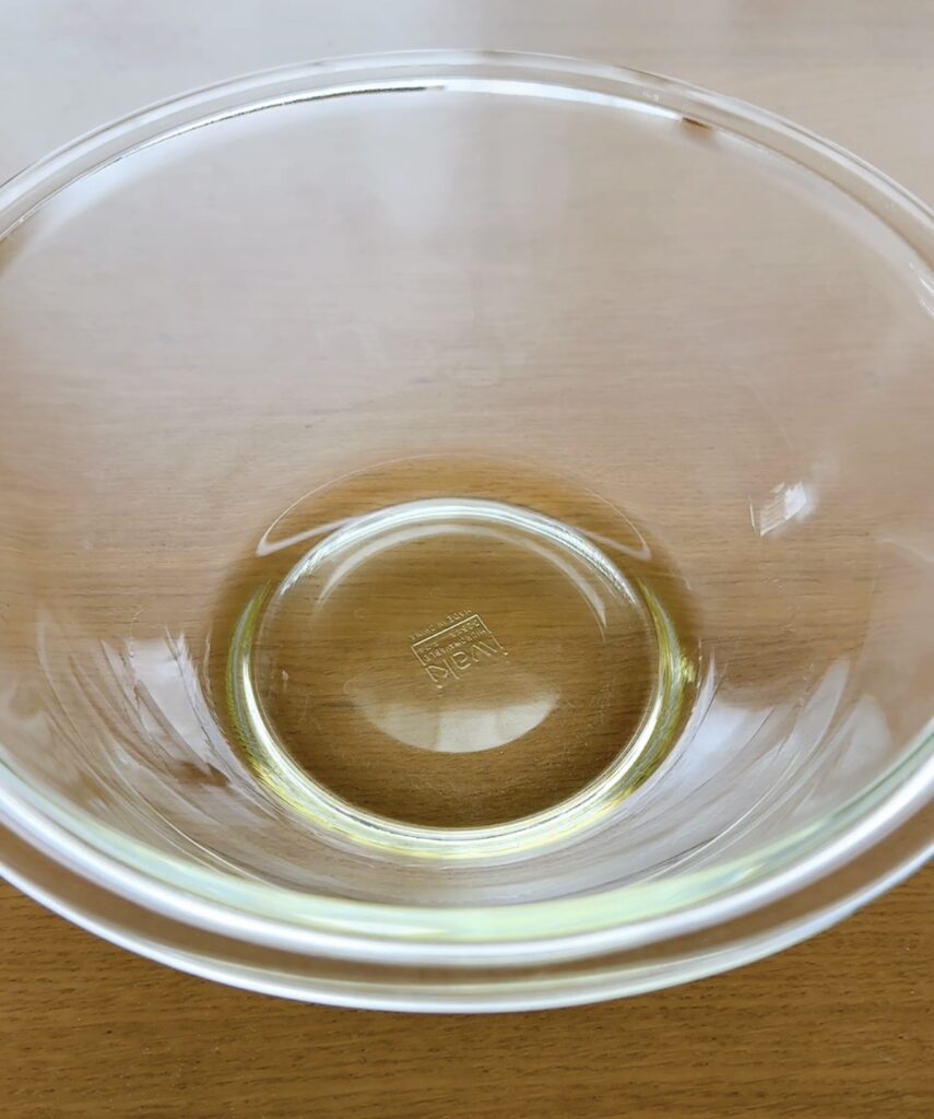 ①ボウルにサラダ油60gを入れ、500Wか600Wのレンジで1分〜1分30秒温める。