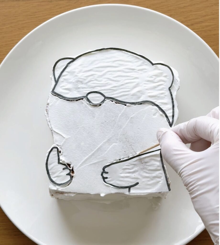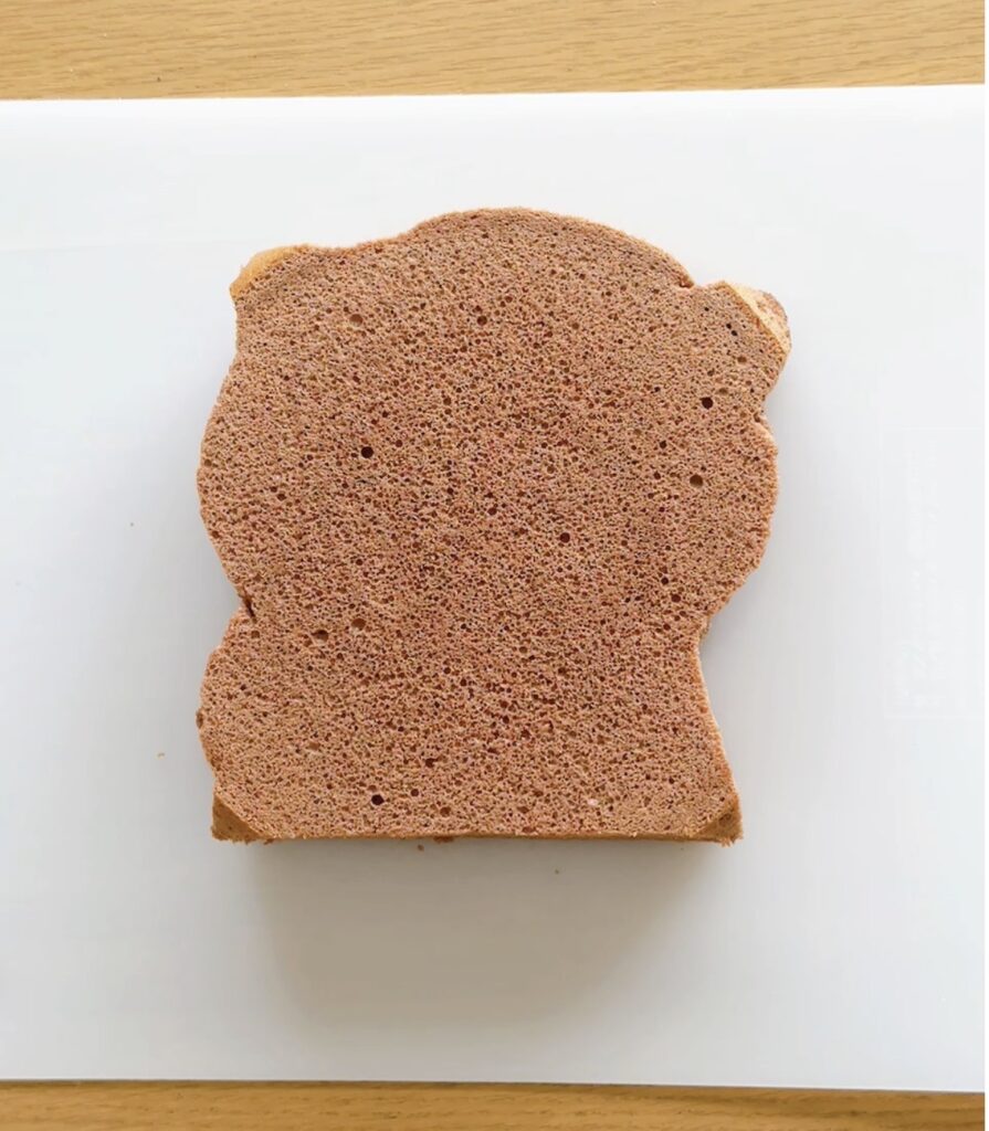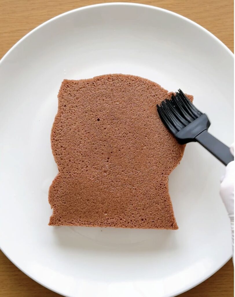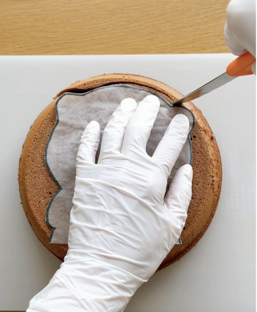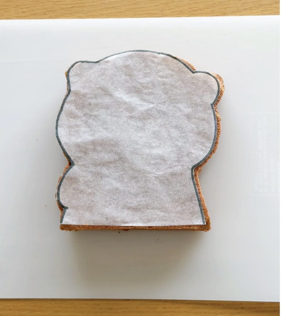 台湾風チョコカステラを使って、カワウソの形にカットしていきます。