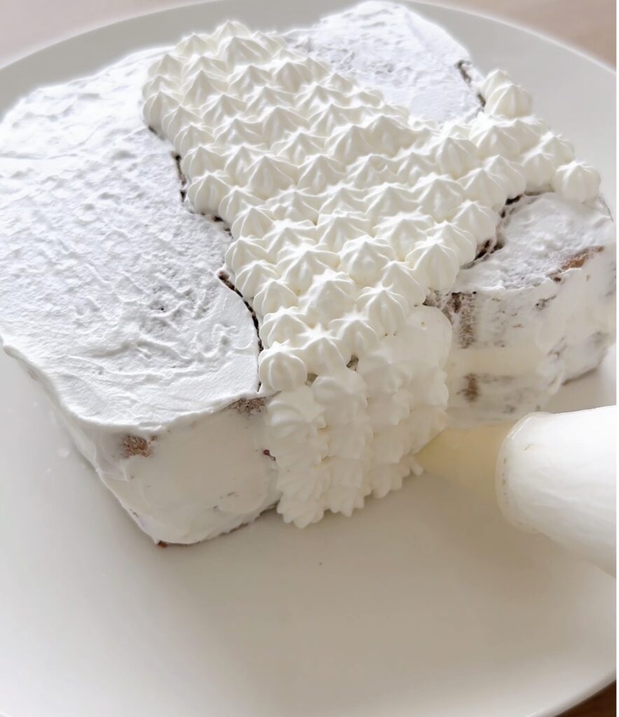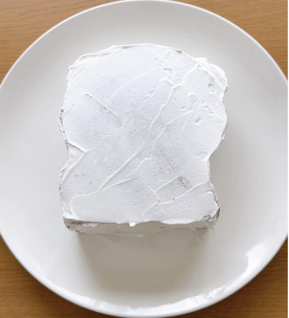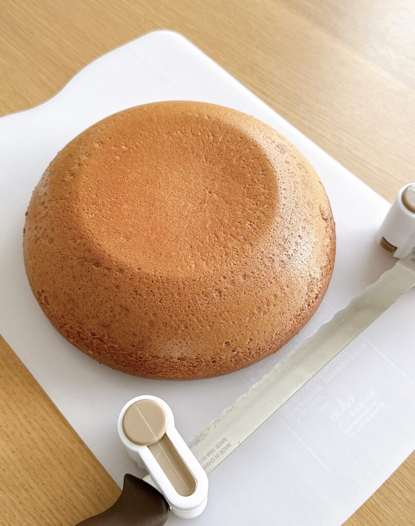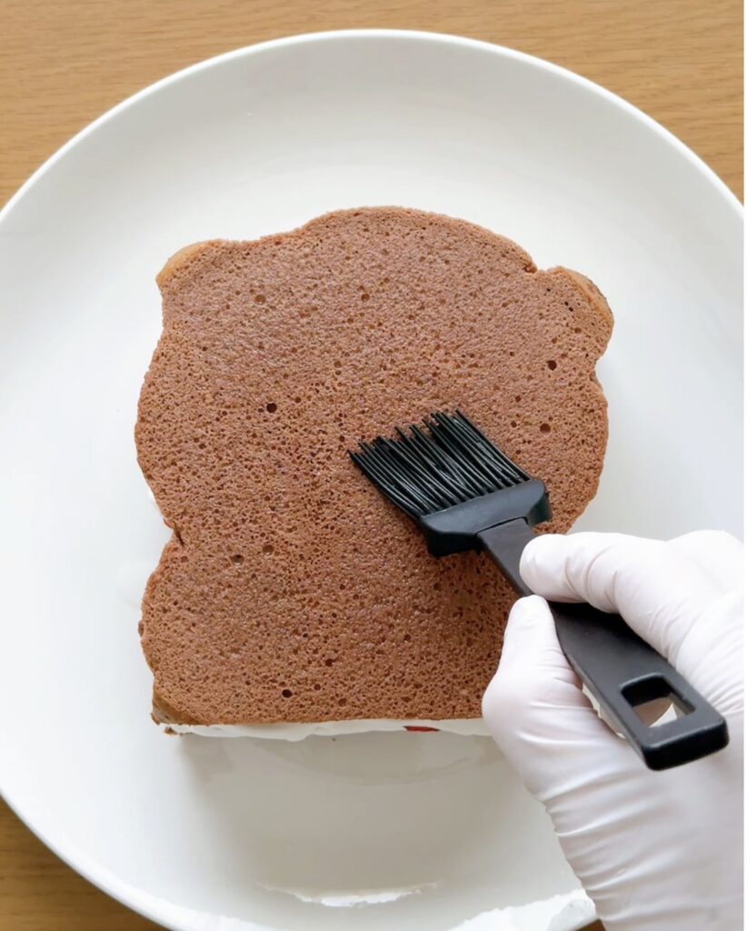 ④シロップを塗り、生クリームをケーキ全体に塗る。