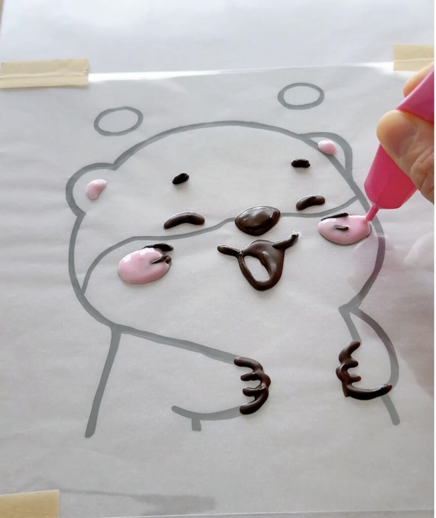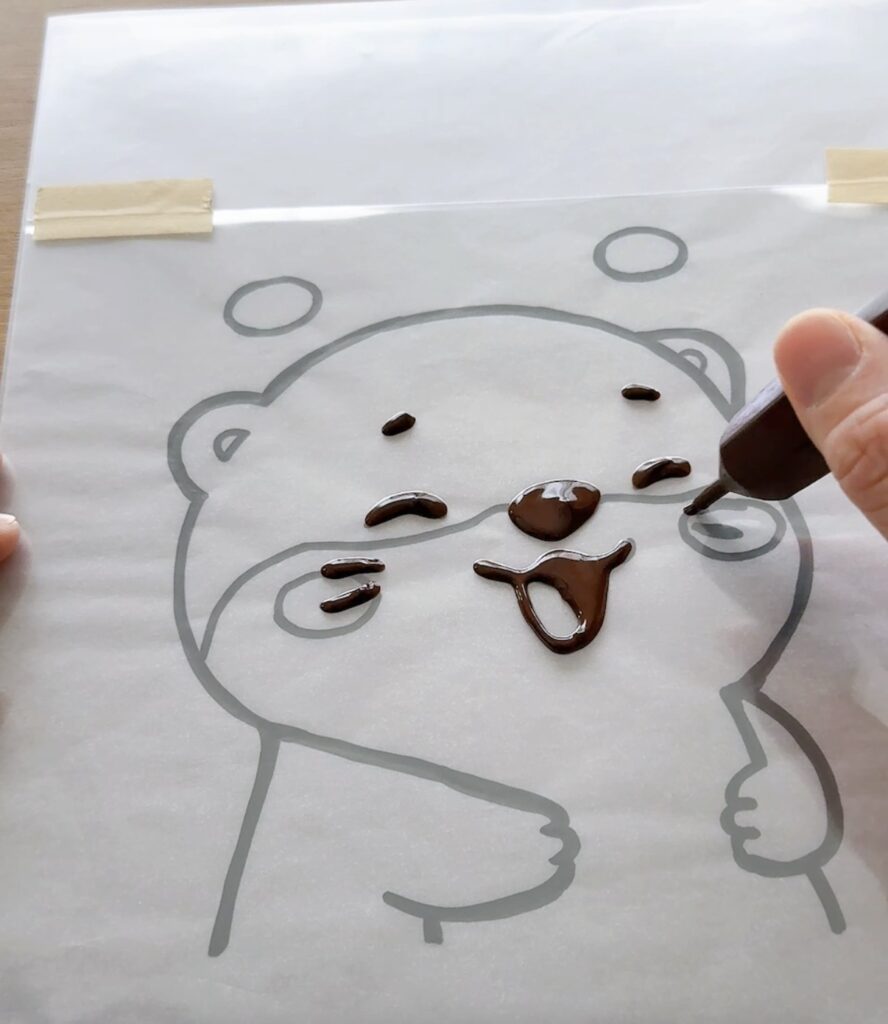 チョコペンでカワウソの顔と手パーツを作る