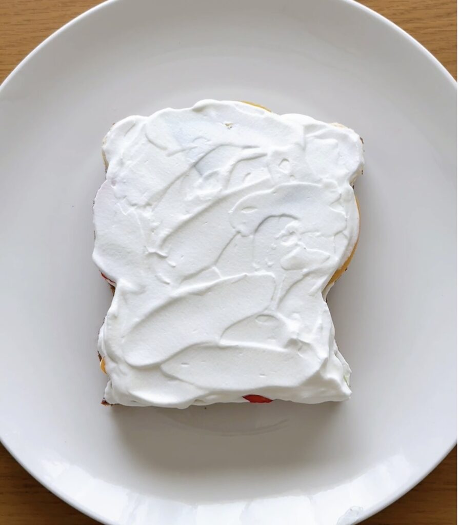 ③上に生クリームをのせ、スポンジを被せる。