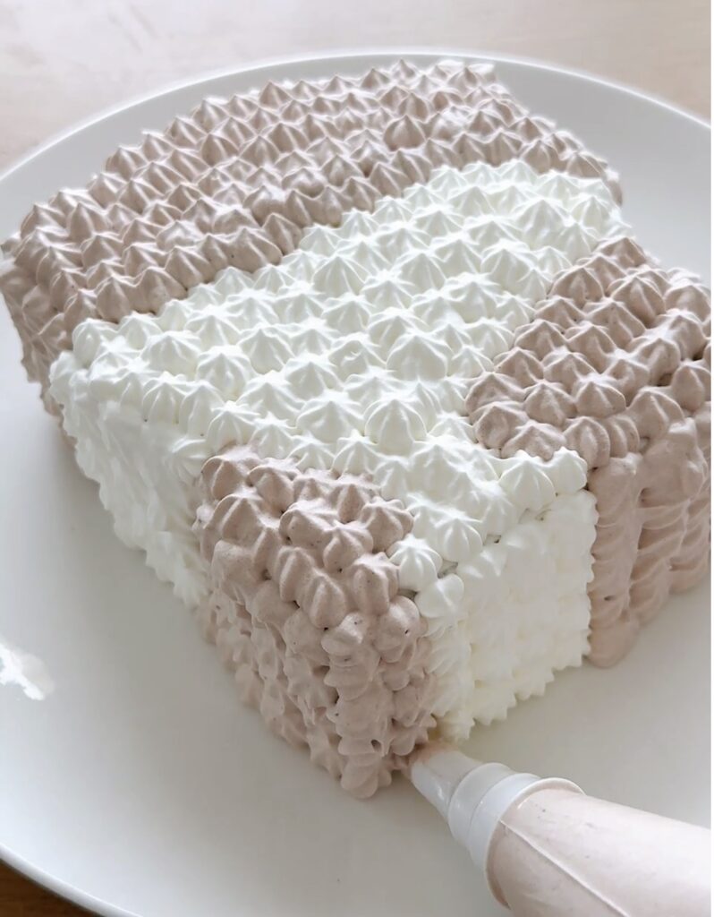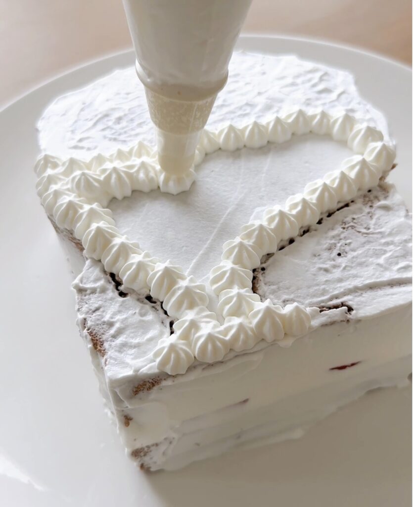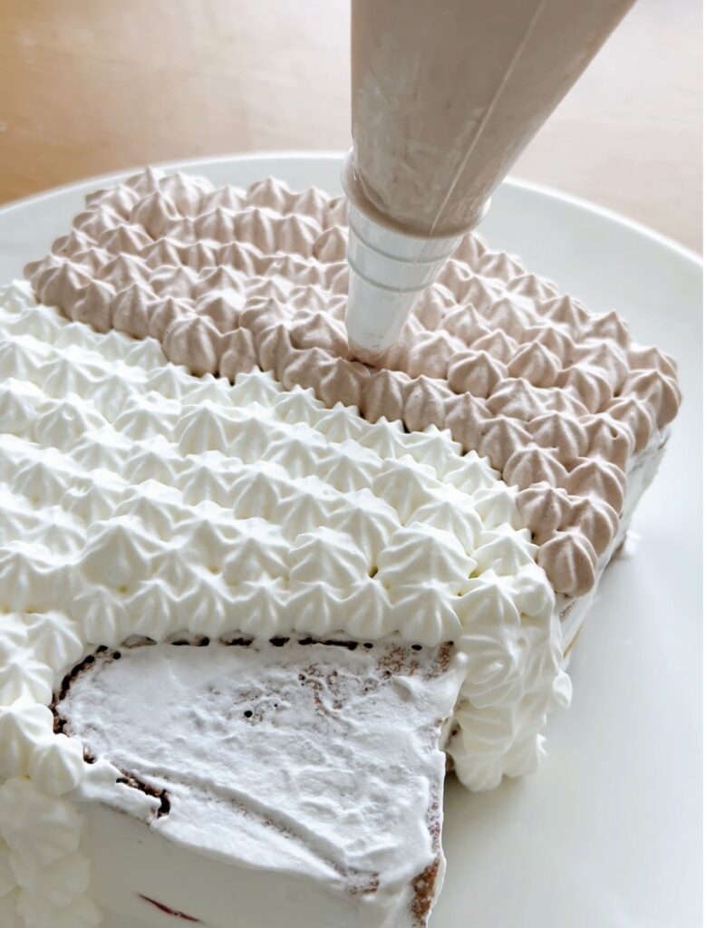 ⑥⑤で印をつけた部分にクリームを絞っていく。