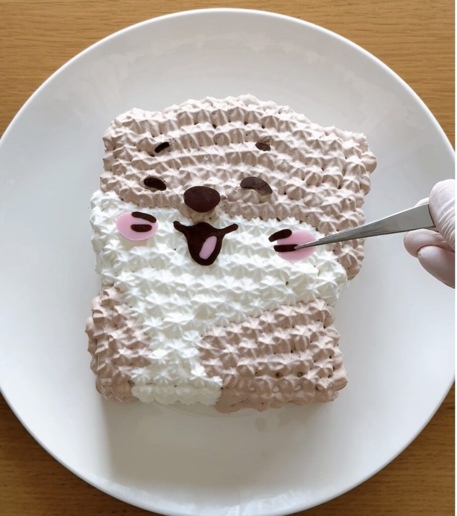カワウソケーキをデコレーションして仕上げる