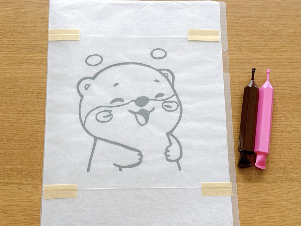 - チョコペンでカワウソの顔と手パーツを作る