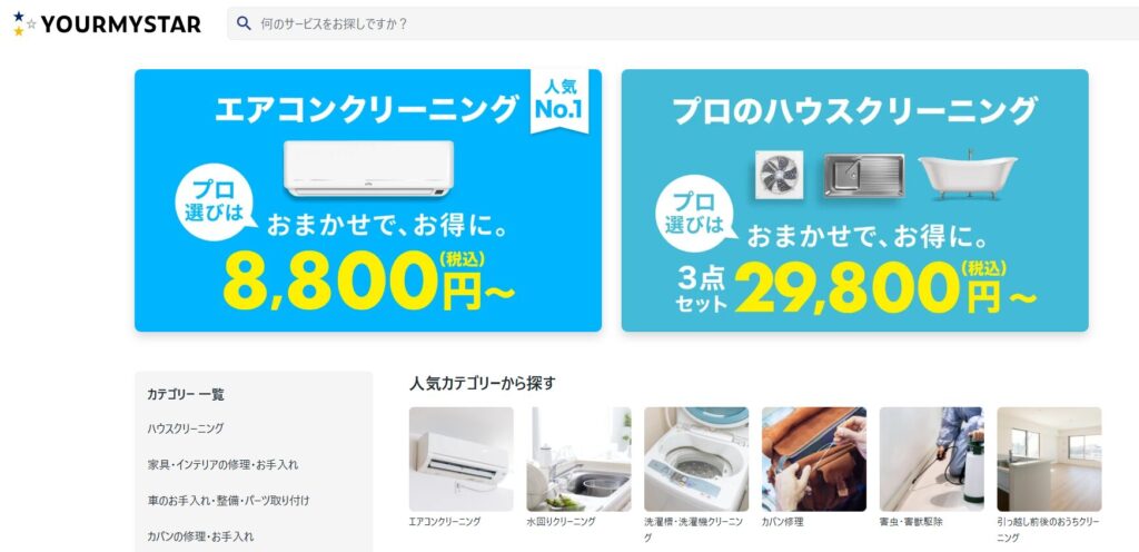 それでは、ユアマイスターの公式サイトから、エアコン掃除の予約の流れをご説明していきます。